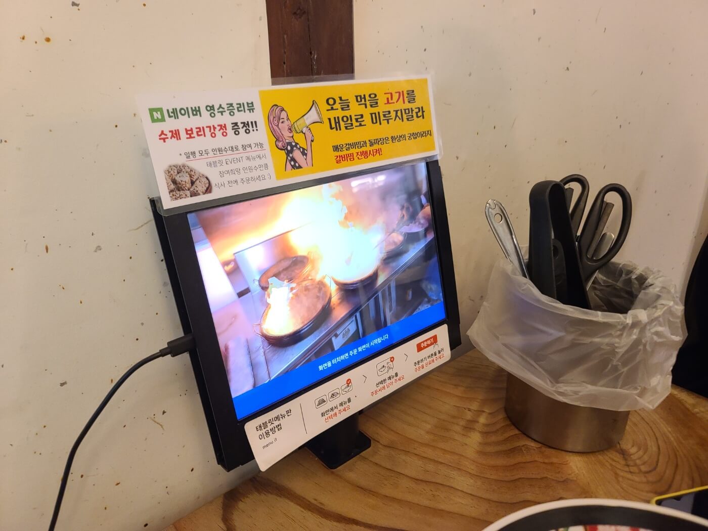 테이블마다 셀프 주문이 가능한 키오스크가 있습니다.
