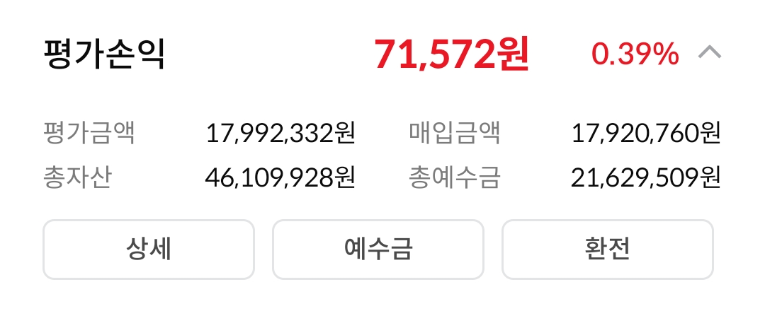 아래 이미지는 증권사 앱의 계좌 요약 화면입니다.