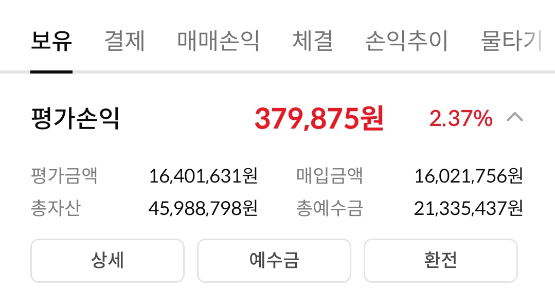 아래 이미지는 증권사 앱의 계좌 요약 화면입니다.