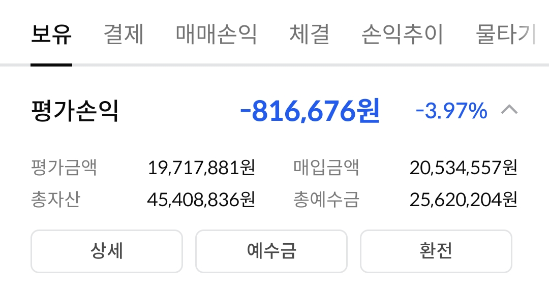 아래 이미지는 증권사 앱의 계좌 요약 화면입니다.