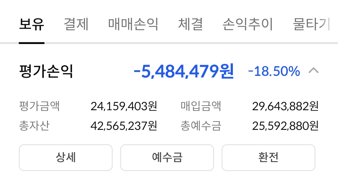 아래 이미지는 증권사 앱의 계좌 요약 화면입니다.