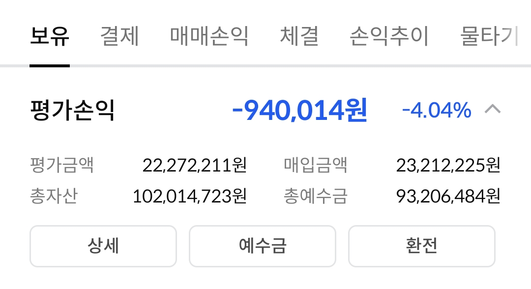 아래 이미지는 증권사 앱의 계좌 요약 화면입니다.